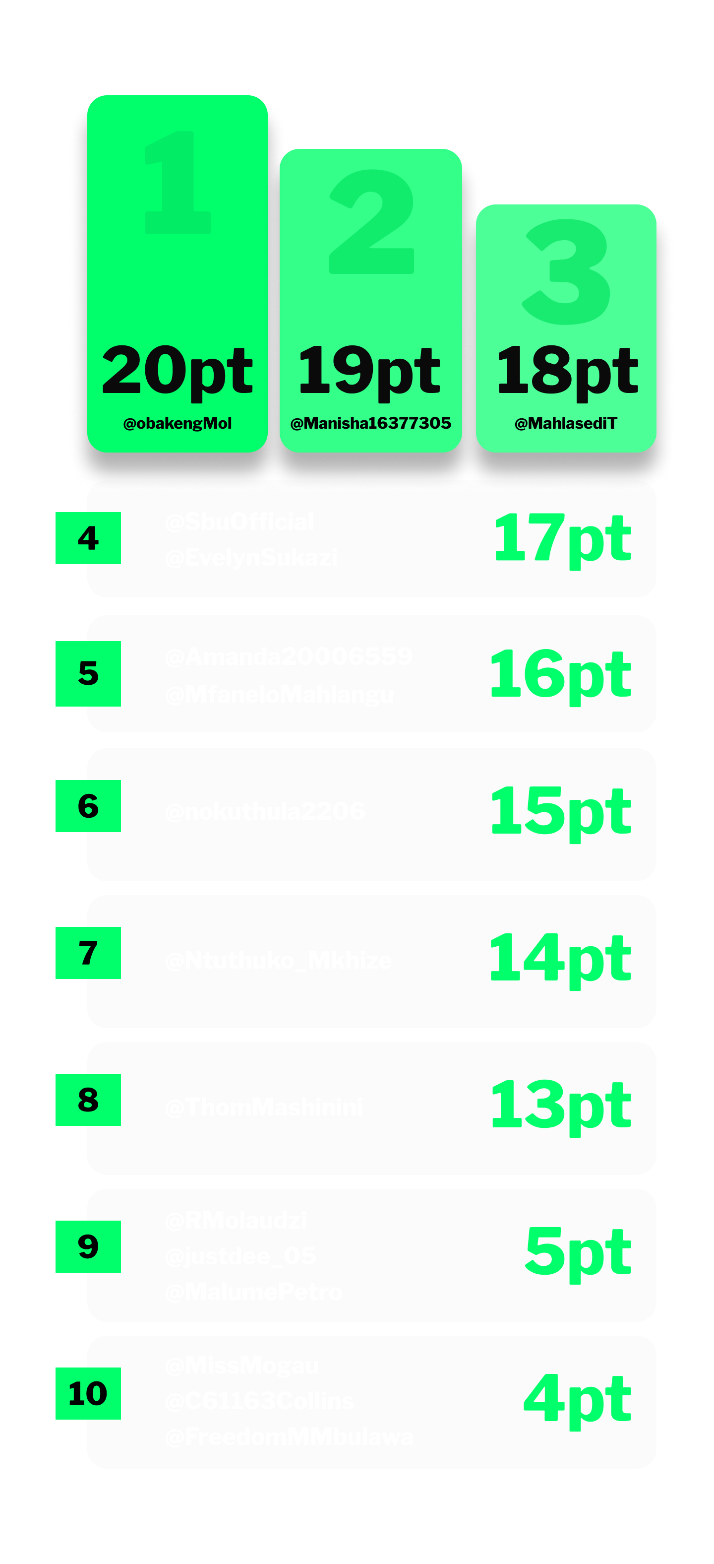 Want to stay ahead of the game? Engage now and climb the leaderboard. See who's leading - it could be YOU next!